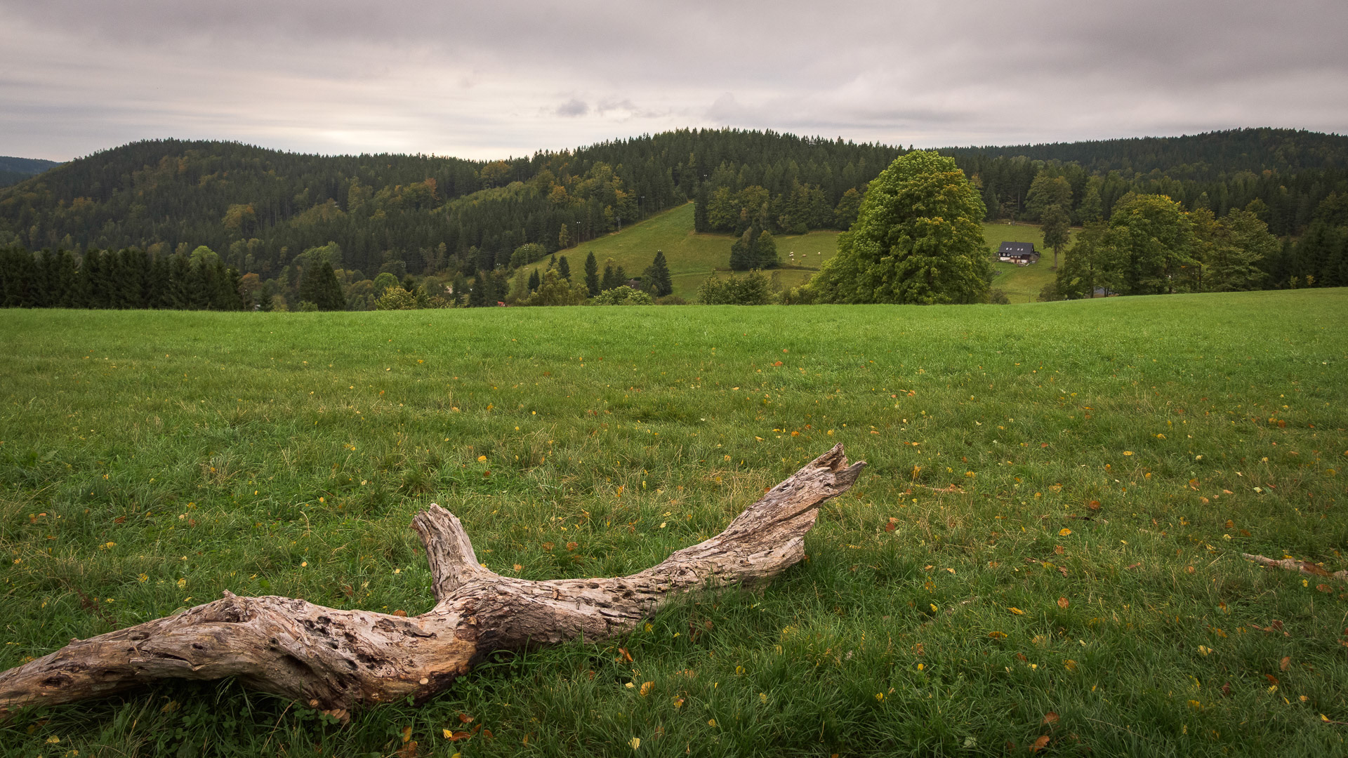 Jizerskohorské bučiny opouštíme v Oldřichovském sedle. Viničnou a Starou poutní cestou dorazíme až k pastvinám u Sloupského potoka.