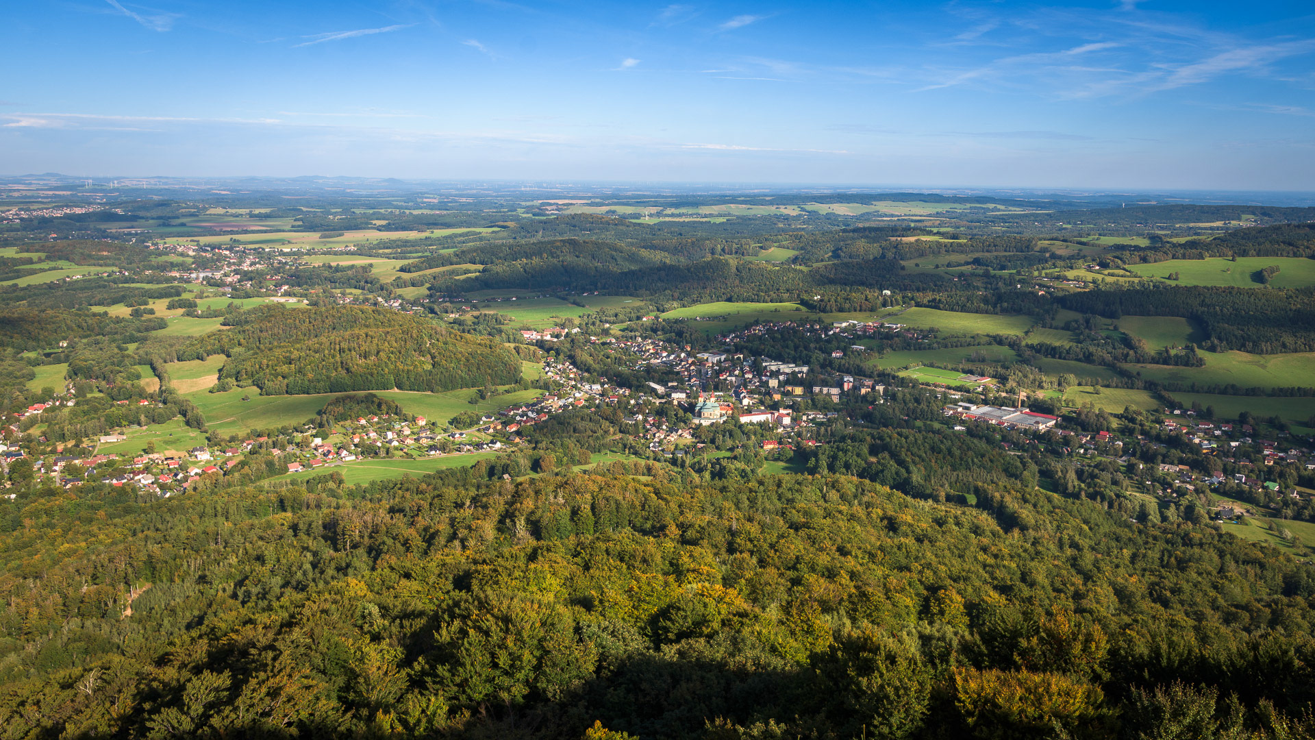 Ořešník nabízí nádherný pohled na Hejnice a jejich okolí včetně vzdálené polské strany hranic.