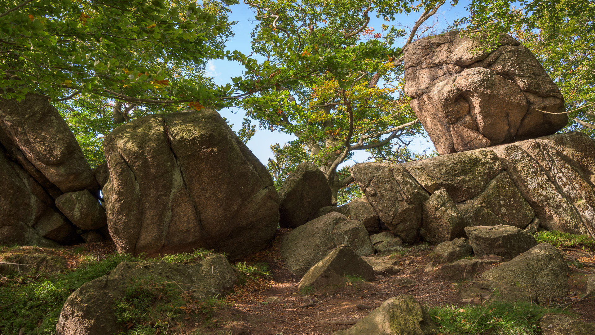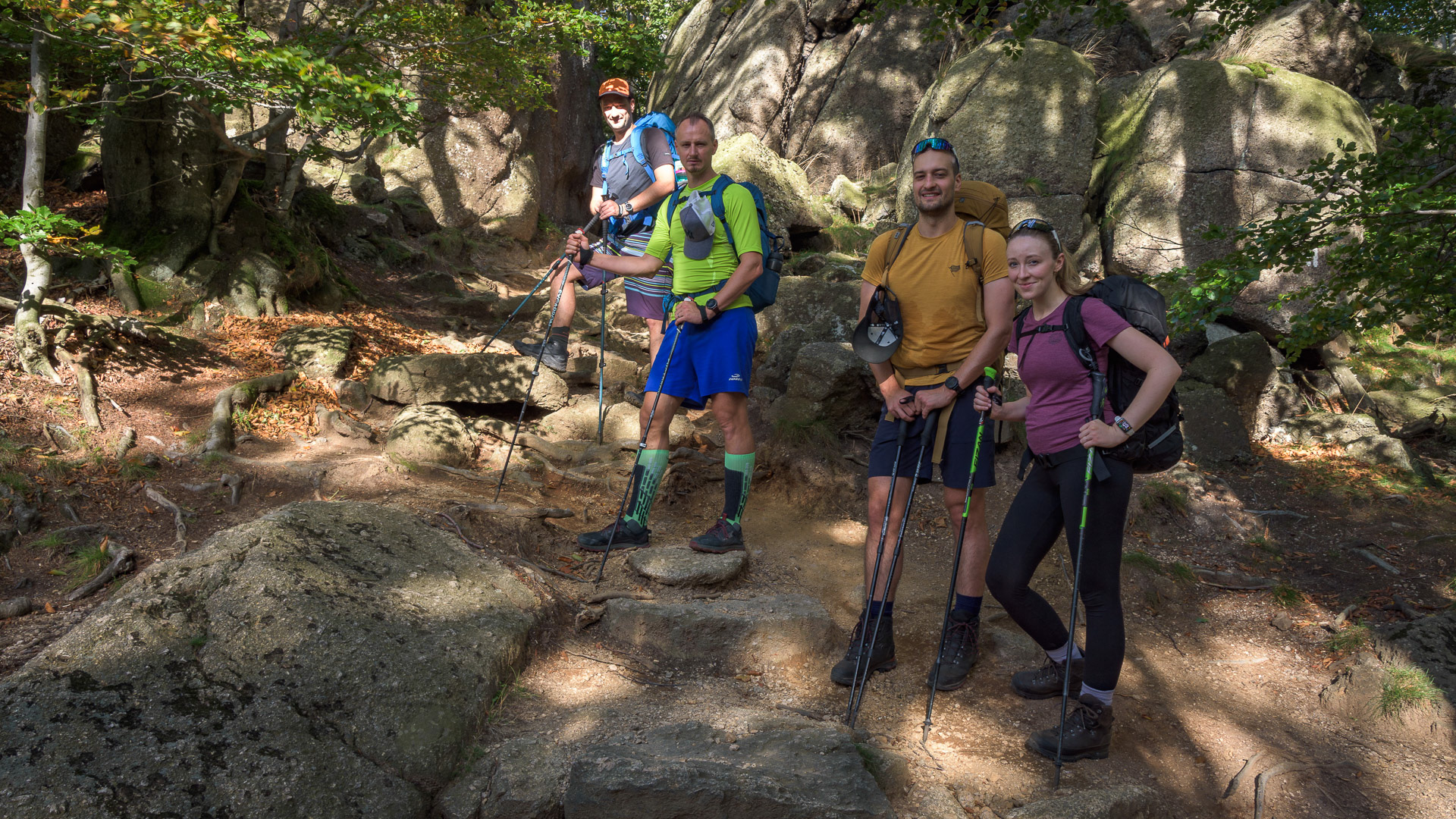 Scházíme z vrcholu a vracíme se zpět na rozcestí pod Ořešníkem. V okolí cesty je množství skalních útvarů prorostlých bučinou. Pokračujeme Štolpišskou cestou a přes vodopád Velký Štolpich vystoupáme až na oblíbenou Jizerskou magistrálu.
