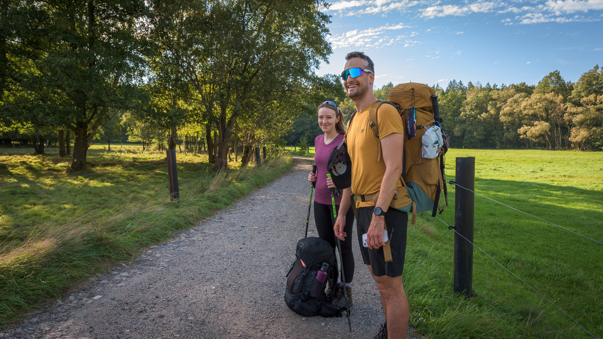 Přivíráme oči před nízkými slunečními paprsky a těšíme se na teplou večeři. V nohách máme 16 km a 450 m převýšení krásnou a pohodlnou cestou.